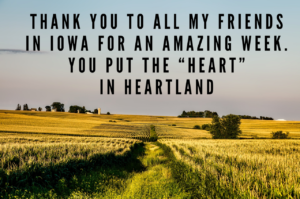 I had been on the go since Monday at 5:30 AM when the alarm clock went off to begin my week. Some quick work in the office filled my morning before two short flights carried me to Iowa for a week of educating, engaging, and hopefully elevating all the people I encountered to finish the year strong and have a great 2019. I was blessed to have a long time friend, Stefanie Sersland, as my host for the week. Sersland is the General Manager of the Coldwell Banker Real Estate Professionals brokerage in Iowa City and she and their hard-working associates have been supporters of my speaking efforts for over ten years now.