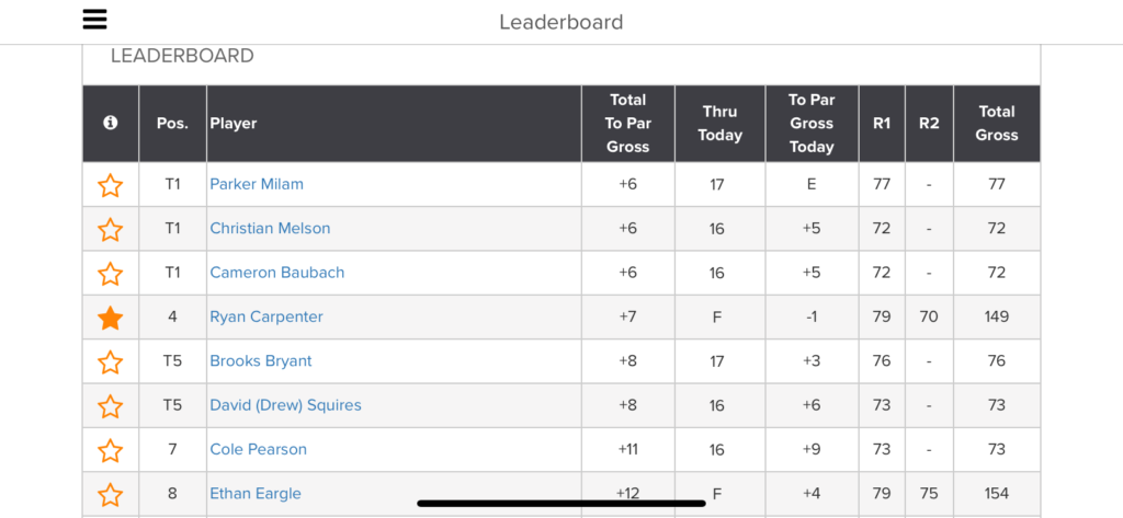 Our son Ryan was playing in The Bulldog Classic, his second golf tournament of the season down in Starkville, Mississippi, where he is a freshman at Mississippi State. While we couldn’t “watch”, we were able to follow his round virtually through an online scoring app. We were so proud of him for shooting a one-under-par round of 70 yesterday to finish in the Top 5 of the event, his best finish so far in the Professional Golf Management program events.
