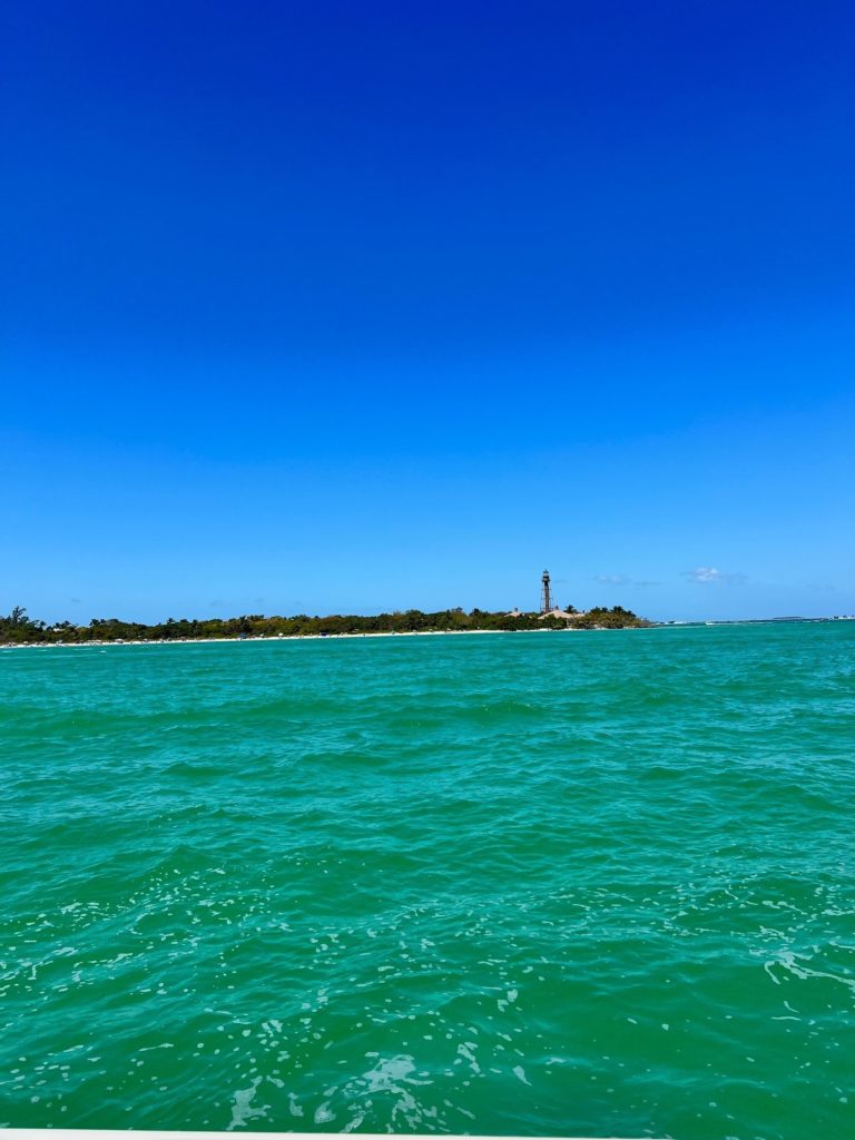 Drop Anchor and Jump In – As we circled around the Eastern end of Sanibel Island, the historic old lighthouse off of our starboard side, the ocean water turned from a dark river-influenced dark blue to a relaxing, tropical greenish-gray. We banked west into the gulf waters and rode along the south side of Sanibel Island, where my wife used to vacation as a young schoolgirl, and we had brought the kids for a Spring Break about 10 years ago. Randy slowed the boat as we approached the iconic Sundial Resort and dropped the anchor some 40′ feet from the shore. The boat slowly rolled with the tide as we readied ourselves to make out way to the beach and resort for lunch and cocktails.