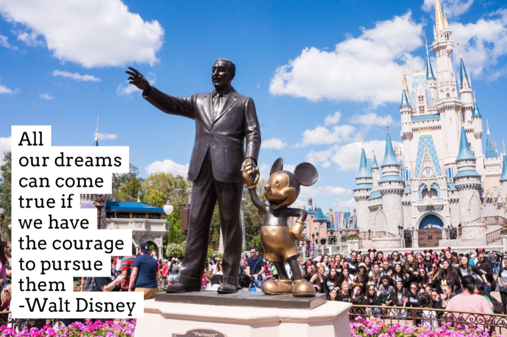 If you’re reading this, you probably have a few memorable experiences that were a direct (or indirect) result of something that Walt and Roy Disney did. I remember going to The Magic Kingdom in Orlando with my Pop (grandfather) shortly after it opened. (We needed tickets for each ride we went on). I think back to the movies I watched with my parents such as Peter Pan, Snow White, Bambi, Lady & The Tramp, and others. I loved those Sunday nights when I was allowed to stay up and watch The Wonderful World of Disney. I can still see the smiles on my daughter’s and son’s faces when we had Brunch with Mickey in the Cosmopolitan Hotel. Who could ever forget their first ride on The Jungle Cruise, Space Mountain, or Mr. Toad’s Wild Ride?