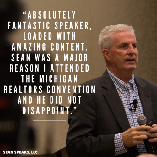 Sean’s speaking appearances have included Coldwell Banker Gen Blue Conferences (2007-2025), the Coldwell Banker Global Management Summit, numerous state Association of Realtors conventions, including Arizona, Florida, Georgia, Iowa, Massachusetts, Michigan, Minnesota, Mississippi, Nebraska, Ohio, Tennessee, Virginia, and Wisconsin. Sean has been a highly-rated speaker at the Triple Play Conference (serving New Jersey, New York, and Pennsylvania) four times. Sean has also presented for the Women’s Council of Realtors and various Board of Realtors events around the country. He has been the featured keynote speaker at events across the United States, including big cities like Chicago, St. Louis, Minneapolis, Pittsburgh, Denver, Dallas, New York City, Nashville, Kansas City, Seattle, and Sacramento, as well as hyper-local engagements in towns like Starkville, Iowa City, Fayetteville, Bentonville, Burlington, Richmond, and Oxford, to name a few.